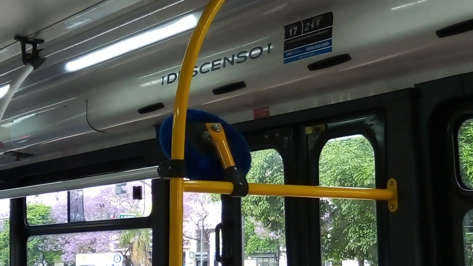 En el interior del colectivo la cartelería se imita a lo básico: los clásicos “cuidado escalón”, “descienda por la puerta trasera”, un 0800 para que el usuario pueda comunicarse en caso de necesidad y el número de interno. Con una rápida marcha hacia el Puente Pueyrredón, todo sigue su curso rutinario. Por lo visto, no ha sucedido lo mismo con uno de los coches de la línea 98, que debió interrumpir su trayecto en Montes de Oca al 1100 (entre Araoz De Lamadrid y Magallanes). El vehículo se encuentra detenido, con las balizas puestas y la tapa del motor lavantada.
