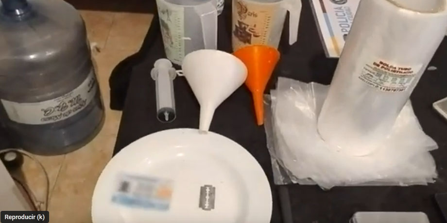 Si bien en todos los allanamientos se secuestraron diversos elementos, la cocina funcionaba en Villa Luro: “En uno de los departamentos de la calle Basualdo, los oficiales hallaron una cocina de ketamina además de 200 euros, 1.154 dólares, 10.630 pesos argentinos, cinco botellas plásticas de 4 kilos de ketamina líquida, picadura de marihuana, ketamina en polvo, trece pastillas de éxtasis, teléfonos celulares, utensilios, balanzas y herramientas de laboratorio”, consignó el informe policial, añadiendo lo encontrado al allanar las propiedades de Caballito y Lomas de Mirador: “En el inmueble de Doblas al 400, además de detenciones se concretó la incautación de 124.800 pesos, 445 dólares, dos teléfonos celulares, dos tablets, una notebook, un cargador de 9 mm sin municiones, dos cartuchos a bala calibre 22, veinte envoltorios de Tusi, 12 pastillas de MDMA, éxtasis y un vehículo Volkswagen Vento de color blanco. Finalmente, en Moreno al 2600 (Lomas del Mirador), los oficiales identificaron a una mujer y le encontraron MDMA en cristal con un peso de 2,8 gramos, 800 dólares, 25.400 pesos argentinos, un celular Iphone, una balanza de precisión y elementos de corte y fraccionamiento”.