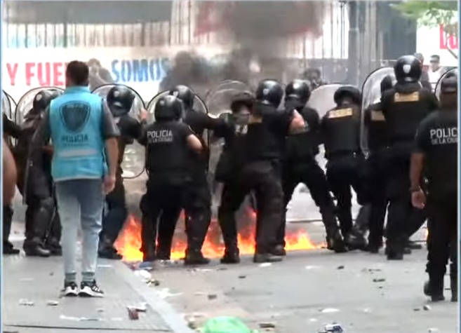 Foto: incidentes en cercanías del Congreso. Una imagen publicada por Maximiliano Piñeiro y reproducida desde la cuenta de X @jorgemacri.