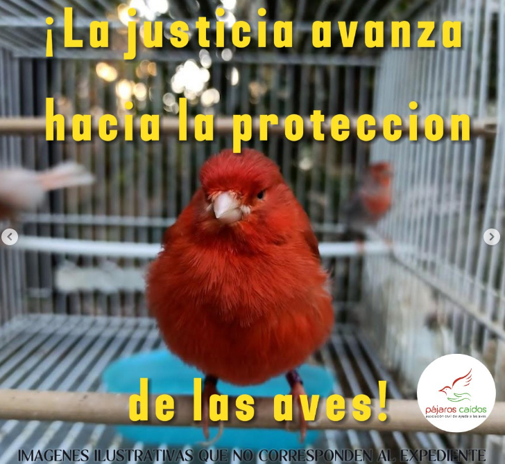 Foto: En el IG @ongpajaroscaidos publicaron esta imagen luego del fallo que declaró a 7 canarios “sujetos de derecho”.