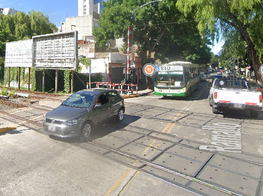 Foto: Google Street muestra el actual paso a nivel de Ramallo, que sería eliminado.