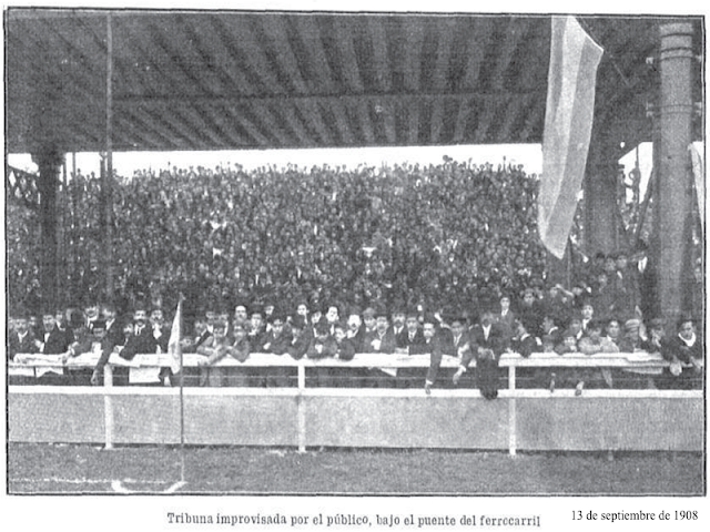 El estadio de Gimnasia y Esgrima de Buenos Aires (más conocido por sus siglas, GEBA) fue anfitrión de numerosos encuentros de la Selección Nacional. GEBA aún posee su campo deportivo en el barrio de Palermo, aunque ya hace más de cien años que ha dejado de practicar fútbol oficial. El citado encuentro de 1908 ante Uruguay, fue el primero en el cual la Selección jugó en ese terreno, llamado, popularmente, Maldonado, por sus cercanía con el arroyo de ese nombre que todavía corría a cielo abierto por la Ciudad de Buenos Aires (hoy está entubado, al igual que el Medrano, el White, etc). En la foto que ilustra esta nota, se ve una tribuna que debió improvisarse en ocasión del clásico rioplatense. Ante la escasez de espacio del predio, tuvieron que montarla debajo del puente del ferrocarril.